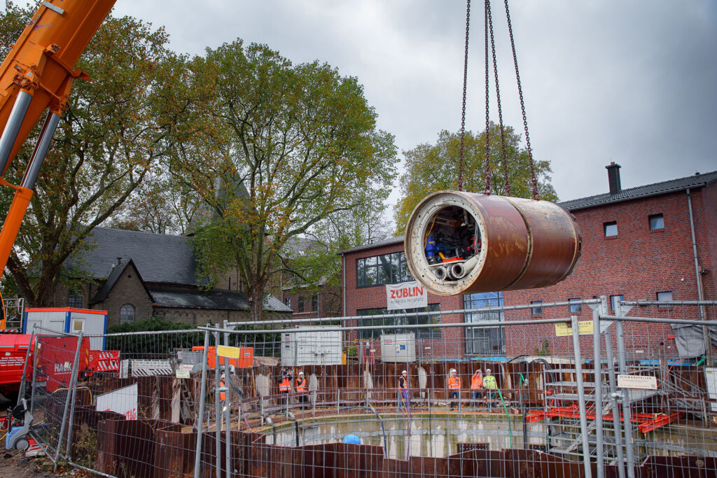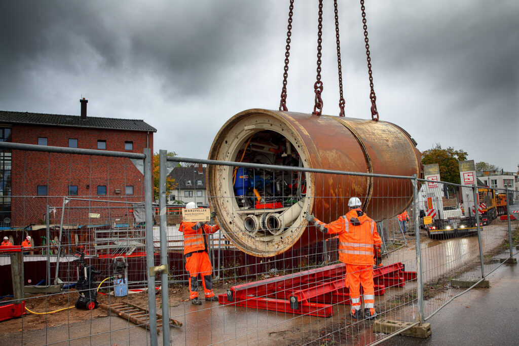 Für die Bergung wurde die Zielbaugrube in Niehl zunächst geflutet und anschließend dicht verschlossen. Die Maschine wurde mit einem Schwerlastkran aus dem Schacht gehoben.